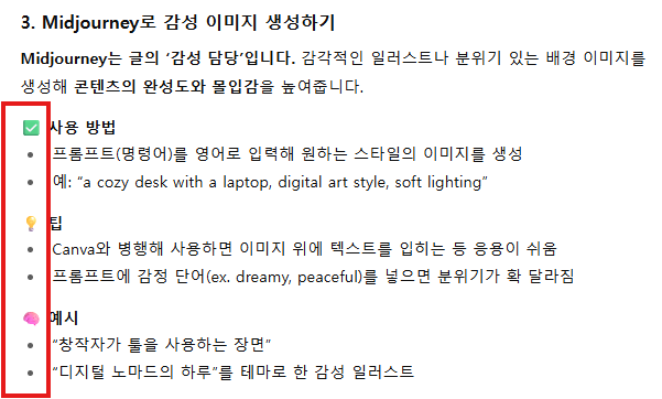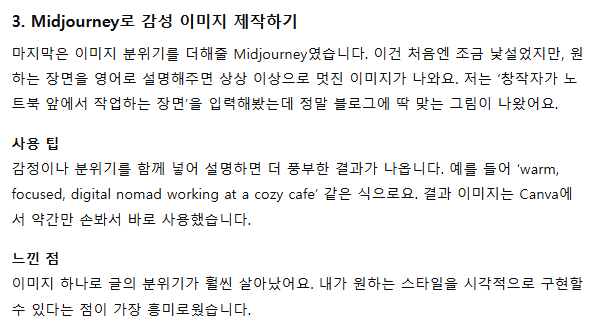 미드저니 설명에 관한 문단도 조금 더 부드러운 문체로 변한 것이 보이시죠?